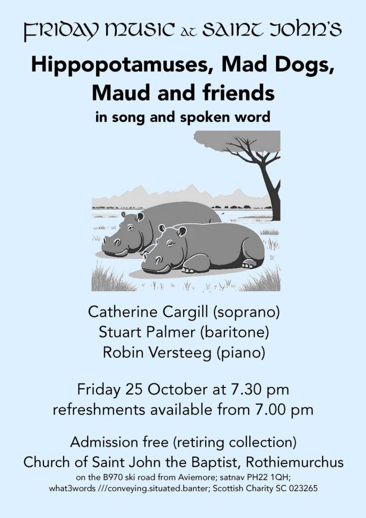 A bit of fun for Stuart and me, and I hope for you too! We are digging in our archive of the mostly-absurd- which is quite some archive, actually- and choosing songs and other items by Flanders and Swann, Joyce Grenfell and some others… we can’t guarantee a completely nostalgia-free event, but there should be a good mix of the familiar and the less-so. We’re delighted to have caught the hugely talented Robin Versteeg on one of his rather rare free evenings, and he’s going to play the piano for us. There’s guaranteed to be at least one song involving audience participation- clue’s in the poster. We hope to see you there!