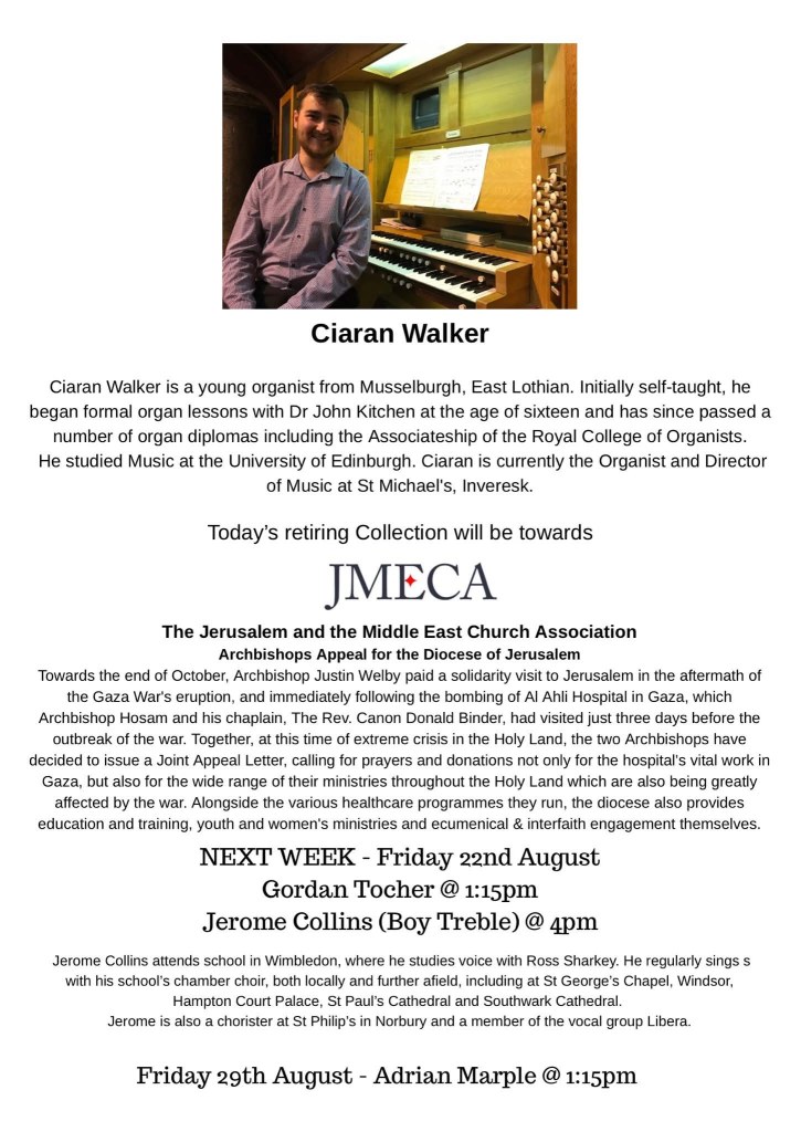Let the Organ Thunder: Ciaran Walker, 15th August.