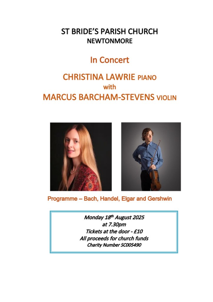 Christina first played as part of the Sutherland Duo with Harriet Mackenzie (violin) in October 2011 but over the years she has developed into a concert pianist who is much in demand. Recently she has played in various recitals in London and has made several appearances in St Giles Cathedral in Edinburgh.
