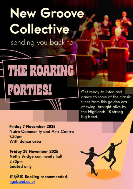 The New Groove Collective, an 18 piece Highland based Big Band are celebrating the anniversary of the end of World War 2 with two nights of music from the 40s.