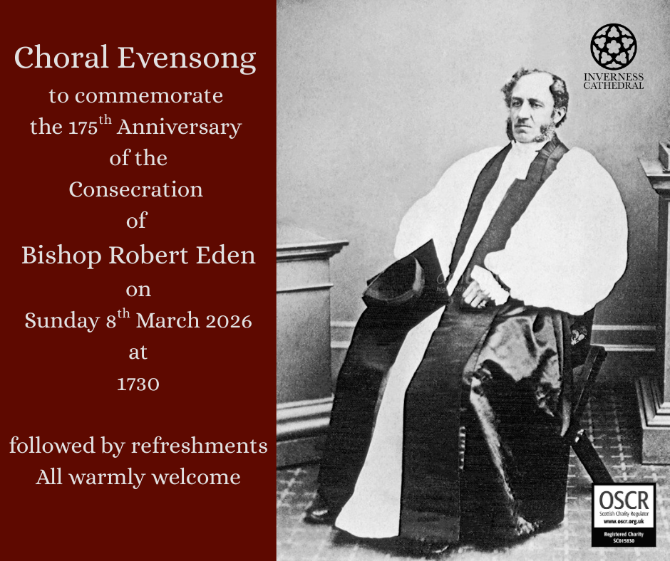 Our Cathedral Choir will offer Choral Evensong on the eve of the 175th anniversary of the consecration of Bishop Robert Eden. The service will be followed by refreshments. All are warmly welcome and invited to share in this commemoration.