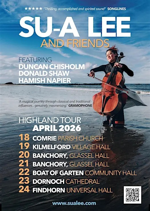 An evening of folk music with Korean-Scottish cellist Su-a Lee, with Duncan Chisholm (Wolfstone), Donald Shaw (Capercaillie) & Hamish Napier